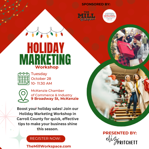 McKenzie, TN — September 30, 2025 — We’re bringing another round of the “Holiday Marketing Made Simple” workshop, just in time to help business professionals prepare for a profitable and stress-free holiday season.